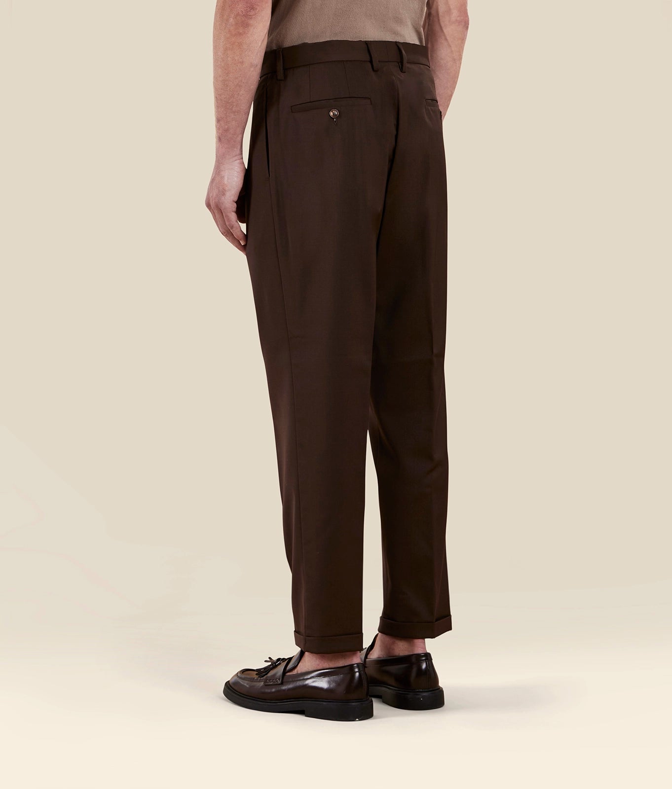 Pantalone carrot fit con una pence in lana pettinata super 110'S