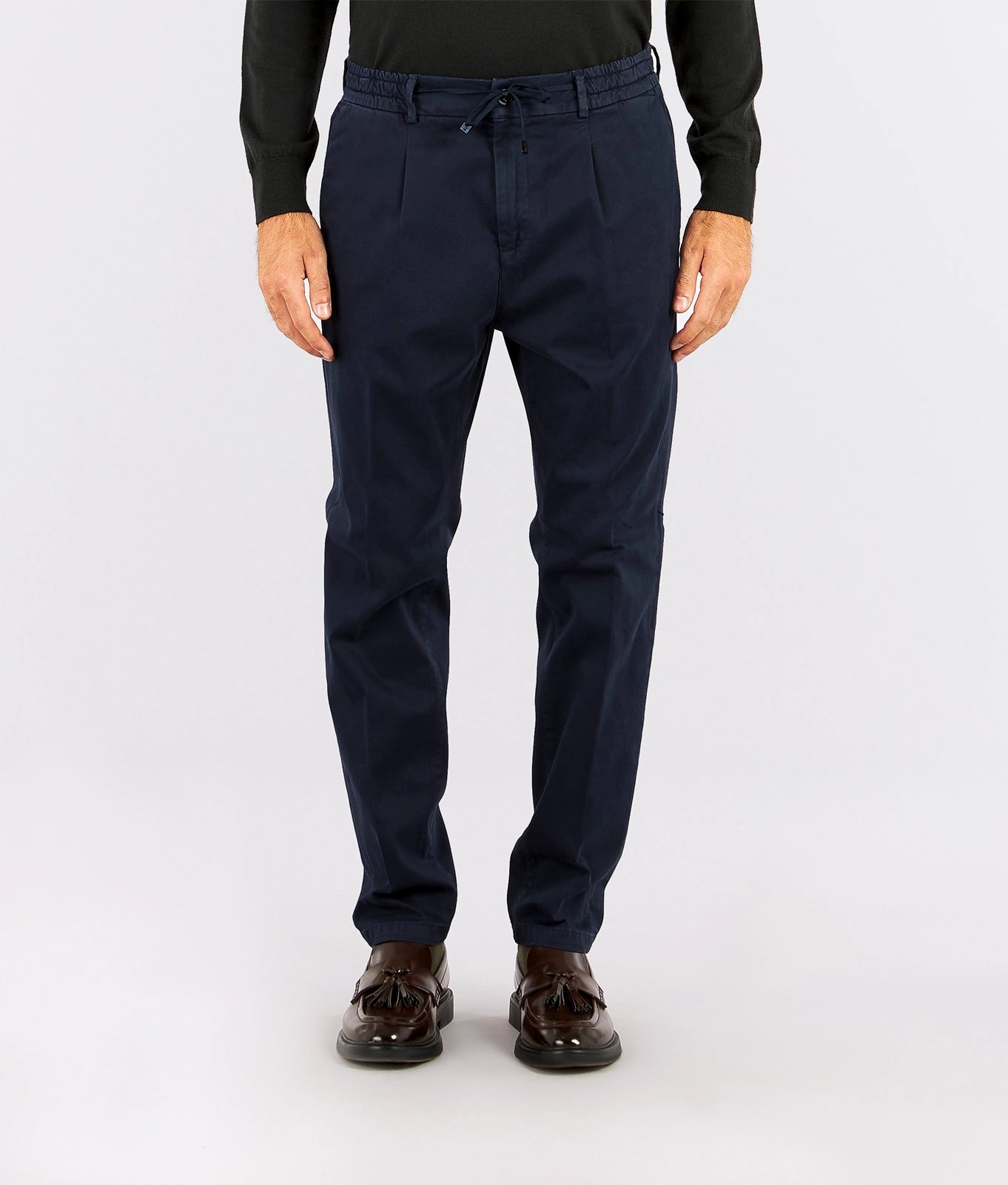 One pince tapered fit trousers with drawstring in stretch cotton gabardine