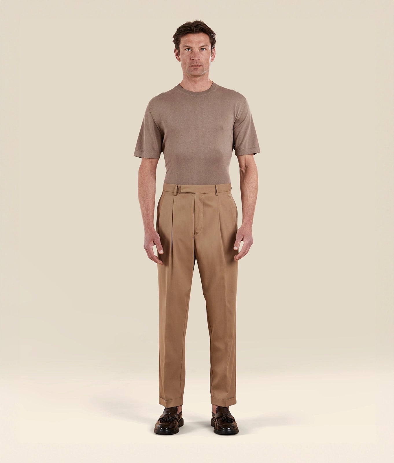 Tapered fit trousers with front pinces in stretch virgin wool twill
