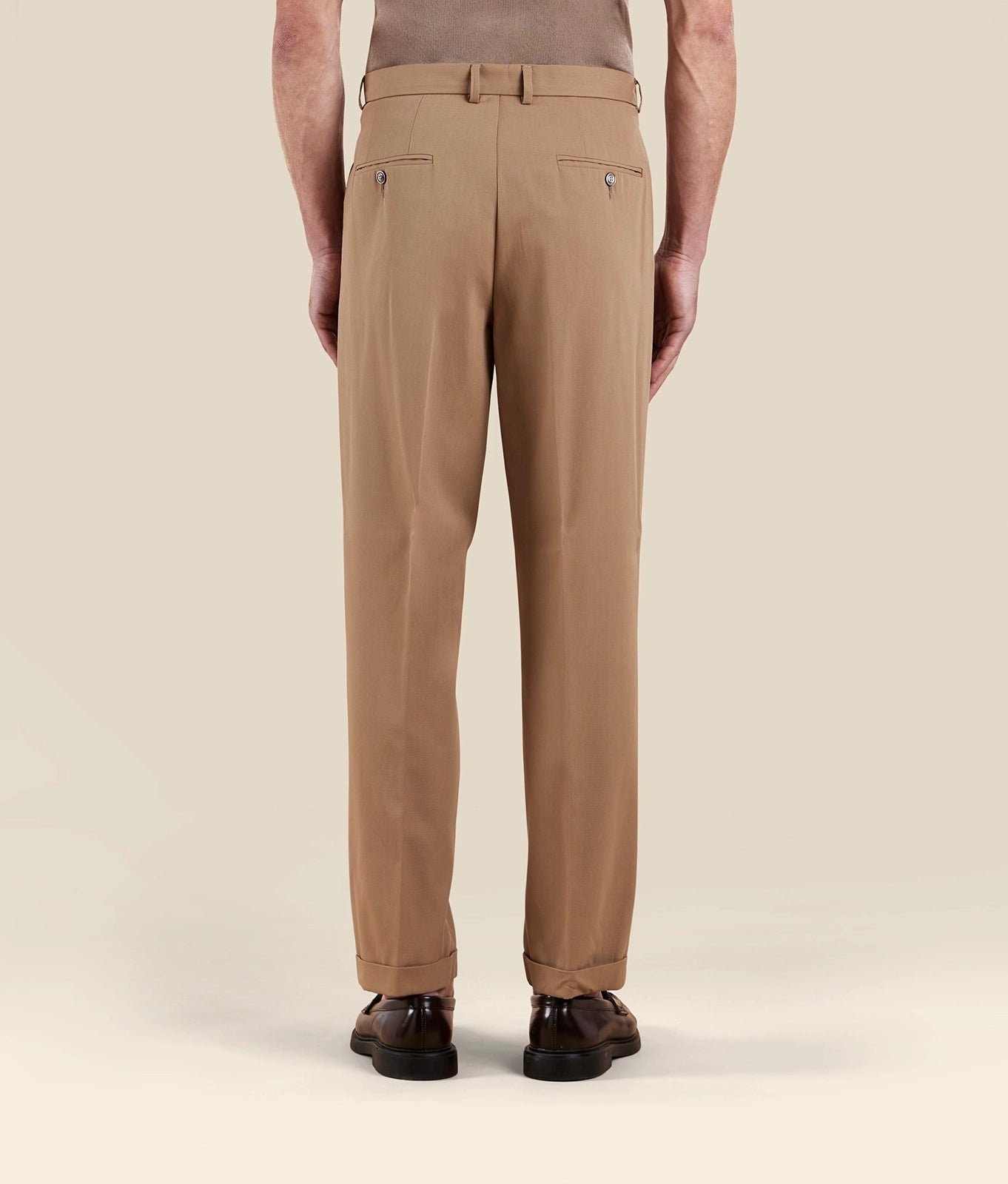 Tapered fit trousers with turn-ups, made from virgin wool flannel