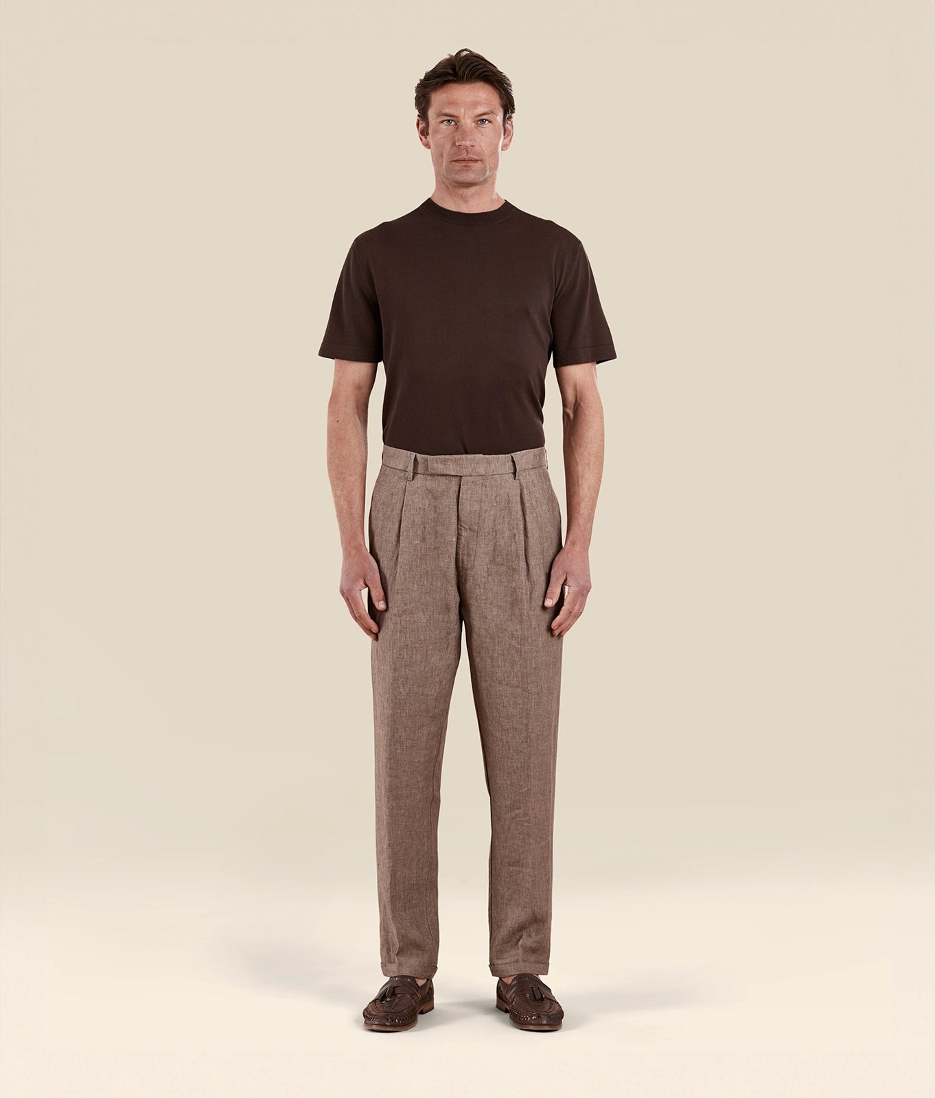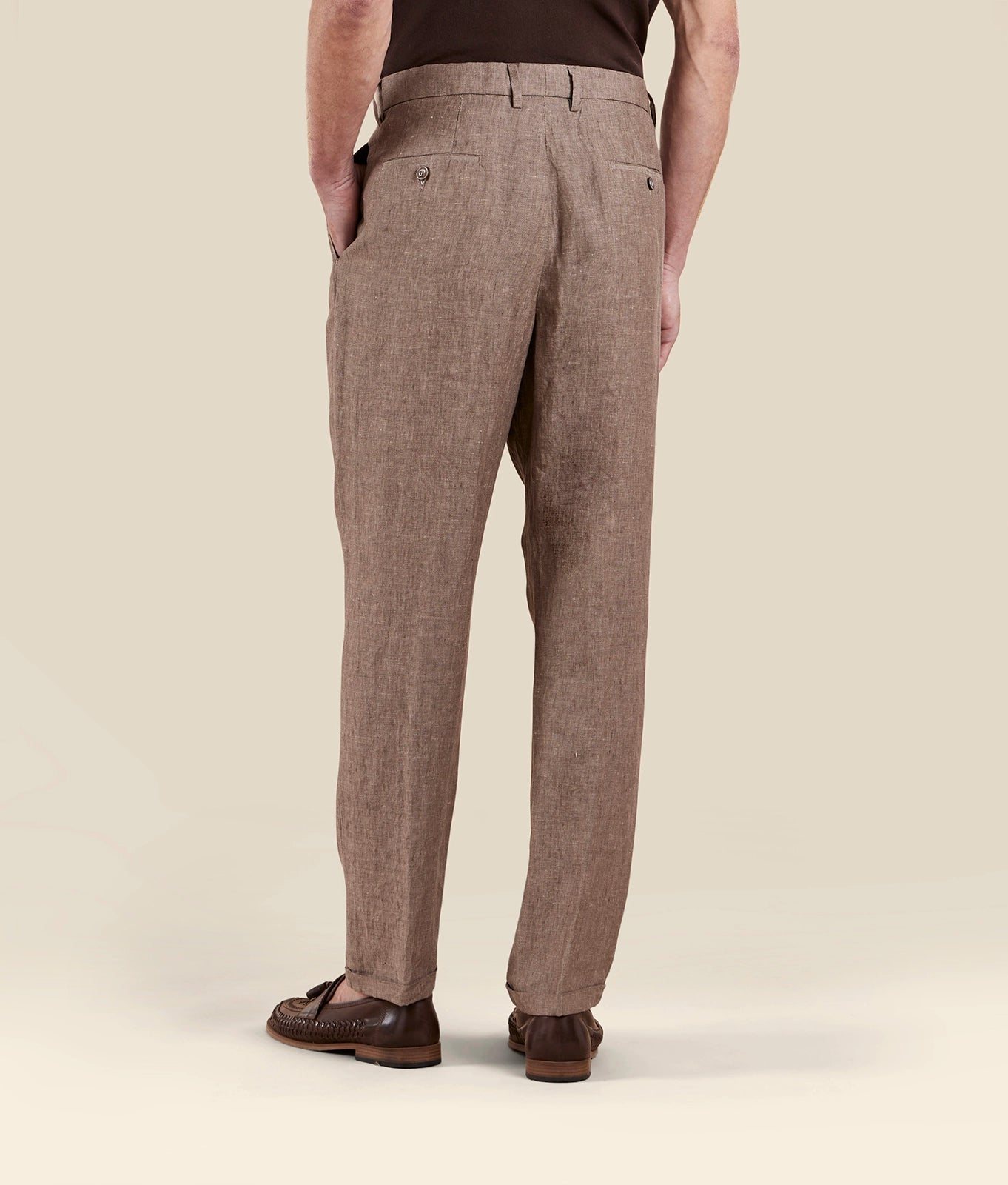 Pantaloni tapered fit con pince in tela leggera di puro lino